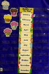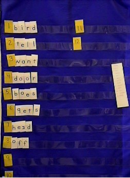 Pocketcharts and Literacy: Pocketcharts are one of my favorite tools to use to teach. The activities that you can do with them are endless. One of my favorite things to do, is to take the poems/songs that we use and write them on sentence strips. (If I put them in the pocketchart, I don't use a Poetry or Song Chart. We read them straight from the pocketchart.) I try to use different color sentence strips or different colors of marker to write them. I alternate the pattern depending on what I'm using. Then I make a matching set of strips, laminate all, and cut the words on the second set of sentence strips apart. Place the first set of sentence strips in the pocketchart, and the students match the words to the text in the pocketchart. (For a visual and more details, visit the Easter page. The first activity on the page is using this technique.) This activity is great for teaching one-to-one correspondence/tracking, left-to-right, top-to-bottom; provides practice reading new vocabulary words and sight words, and word discrimination. This activity can also be used as a Literacy Center activity or as material for "Read the Room". Pocketcharts are also great places for sorting into 2 or 3 categories. This past week, I used my pocketcharts for 2 different sorting activities. The first activity was a Learning Center activity. The students were to sort sentence strips that I'd typed up using a 72 pt font on landscape sized paper. They were to sort the sentences into "telling/statement (.)" and "asking/question (?)" categories. Both headings were typed up in the same format as the sentences, then all were cut apart into strips. The two headings were placed on the top row of the pocketchart, and the students sorted the sentence strips into the two categories. Some of the sentences contained the correct punctuation and some contained no punctuation. The punctuated sentences were added to give some students a boost in getting started. The other activity was an independent activity for one student. We've been working on identifying compound words, so I wrote two headings on two index cards: "compound word" and "not a compound word." Then I wrote compound words, as well as words that weren't compound words, on individual index cards. The two cards with the headings were placed on the top row of the pocketchart. The student was to read the word on each card and place it underneath the correct heading. Pocketcharts also work exceptionally well for students who are practicing putting words into alphabetical order. I was often very exasperated with my students when working on ABC order because they were forever forgetting a word, and instead of going back and erasing the words and inserting it into the correct place, they'd just take the easy way out and write it at the end of the list. Then I decided to write their words on 3x5 index cards and let them physically put them in ABC order in the pocketchart. After they get them in the right order, then they copy them onto their paper. I also provided an ABC strip in the top row of the pocketchart for them to use. Those ABC desktapes that you can purchase by the roll from the school supply places, stuck onto a sentence strip and laminated makes perfect ABC strips. (I flip mine over and stick a number- line desktape to the back of it before I laminate it and it does dual duty.) Anyway, once I started letting my students use the cards and pocketchart for doing their ABC order activities, their work drastically improved. You can also use pocketcharts for sequencing activities. I use mine for picture card sequencing, sequencing pictures to match a story, sequencing sentence strips to match a story, and for changing the text of a song or poem. By moving the sentence strips around, you can change the meaning/wording of a song or poem. In the picture below, I used the pocketchart as a Center for sequencing the months of the year. I purchased a Birthday set that had the name of each month written on a cupcake. The students were provided a "master list" of the months to use in sequencing the months in the pocketchart. (And I never intended on using the Birthday set for birthdays! :)