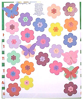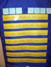 Teaching Objectives: Recently in our faculty meeting it was mentioned to us that it was good practice to state the objectives that were being taught on the board so that the students would know what was to be covered. This is somewhat hard for me because of all the different objectives and lessons that are going on (not your traditional classroom). But to give it a try, I created this display to post the objs. for my Language Arts block for the week. Instead of writing them in obj. form, I abbreviated them so my students could better understand/read them. I change them each Friday afternoon. I introduce them on Monday morning and try to review them before we start each day. It does make a good point of entry for reviewing skills.