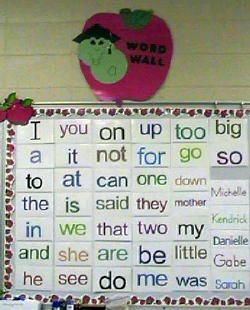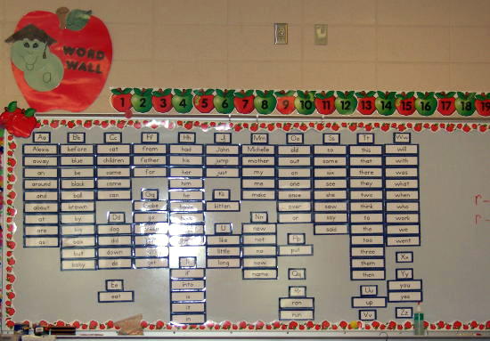 '06 - '07 I redid my Word Wall again! Much more to my liking this time and much more student friendly. Still in ABC order but easily read. The first part is stapled to my bulletin board and the second part I put magnets on and used my white board. The biggest drawback is that it takes up a lot of my whiteboard.