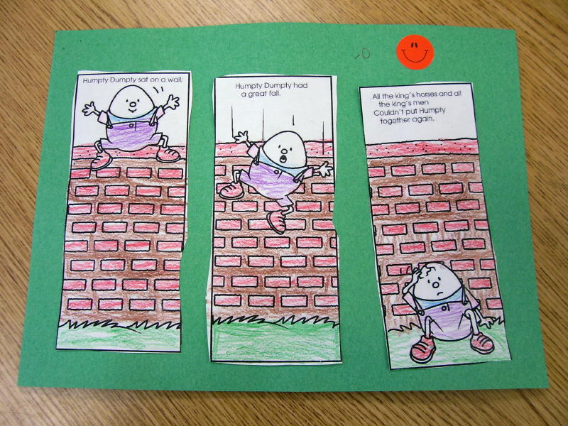 Frog Street Press makes a cute Humpty Dumpty reproducible book for the children. I think it’s in the back of the Color Words book, or maybe the ABCs book. Information on both of these books can be found on the Literacy Connections page.